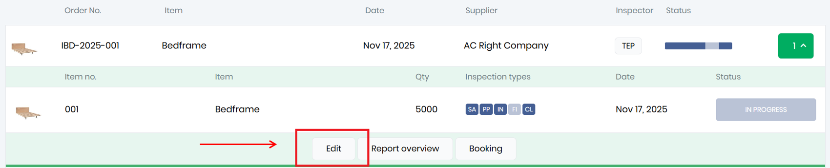 Here you will see the inspection has an In progress label. Click and press Reassign to assign it to another user: