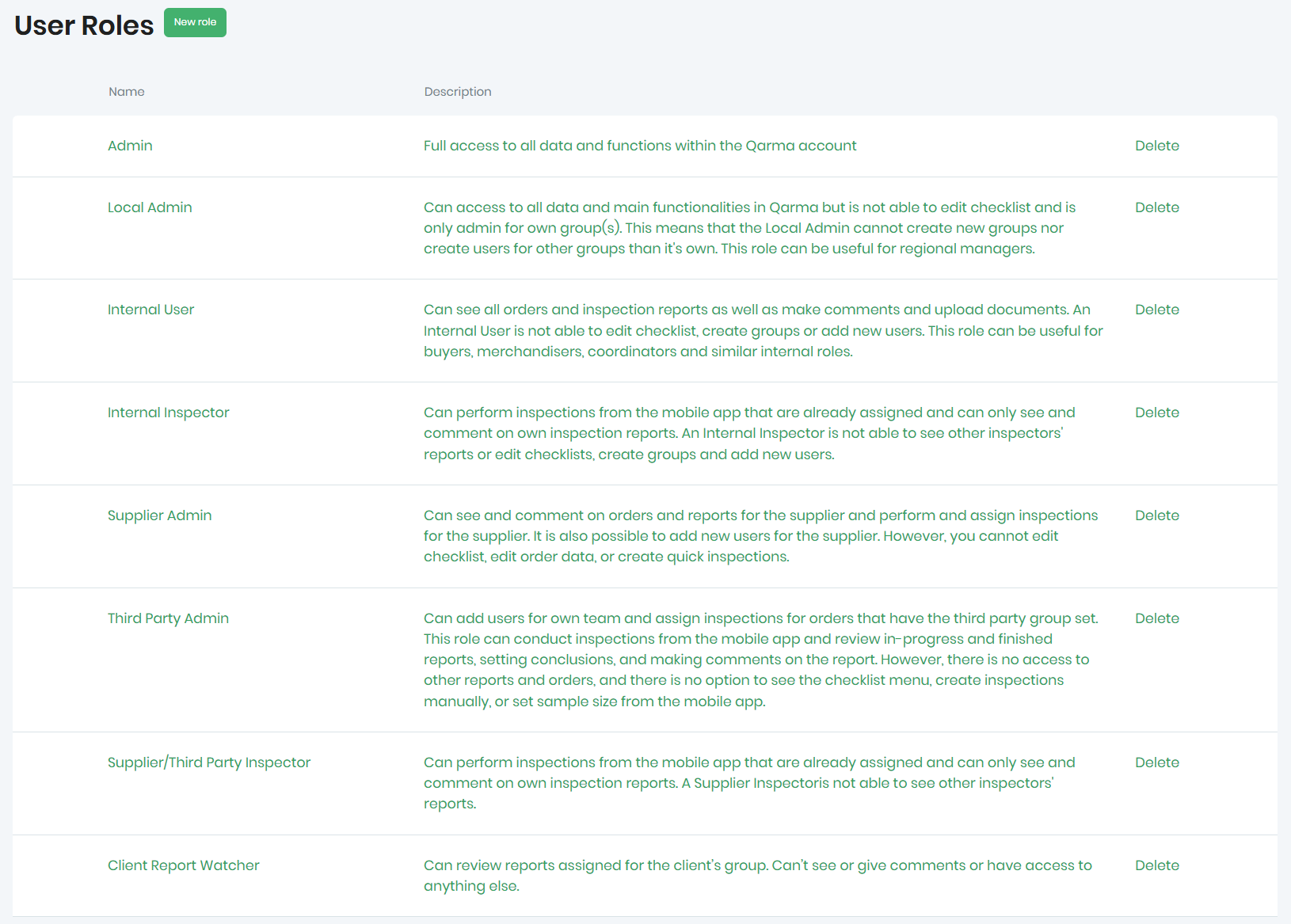 When a Qarma Account is built for a customer, its always built with following standard roles: