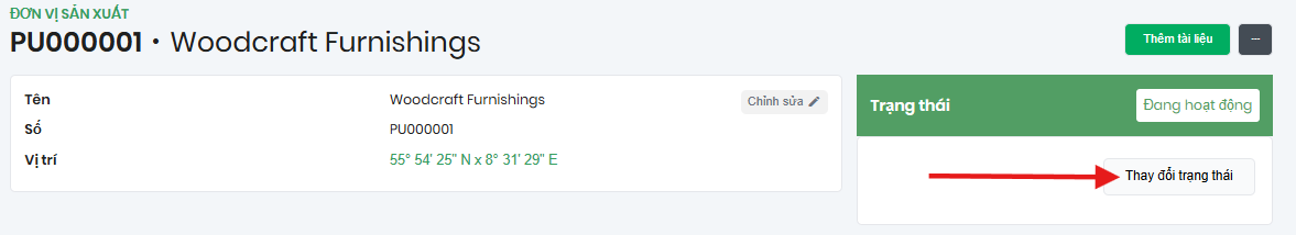 Trạng thái hiện tại cũng hiển thị trên trang đơn vị sản xuất riêng lẻ, nơi bạn có thể cập nhật hoặc thay đổi trạng thái khi cần.