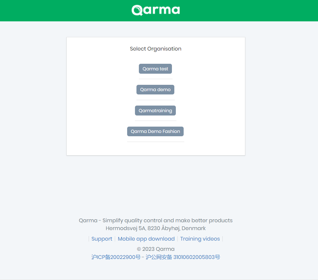 1. 登录应用程序时,系统会要求您选择想要访问的组织。