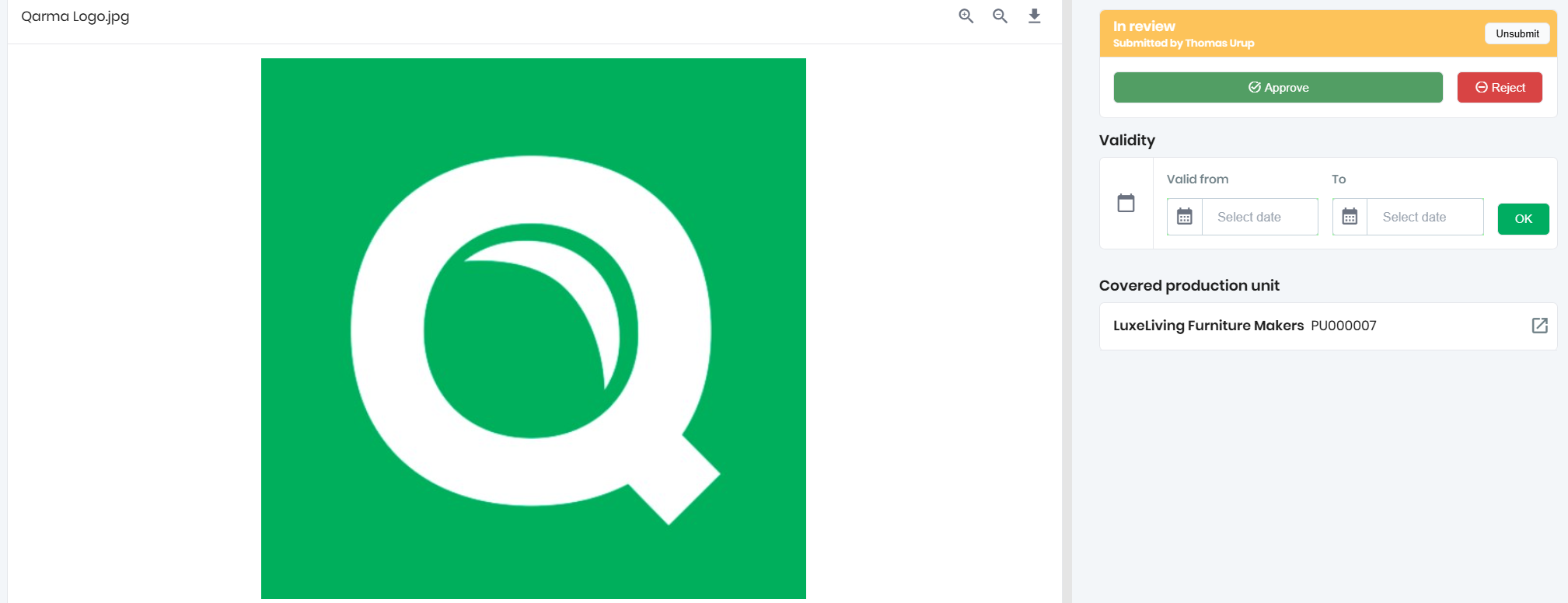 - 文件需经过审核并获得批准后,才能在供应商或生产单位页面生效并可供查看。